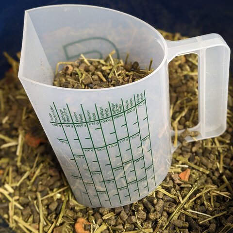 Miarka do odmierzania paszy - 1 kg granulatu lub 750 g. paszy musli.